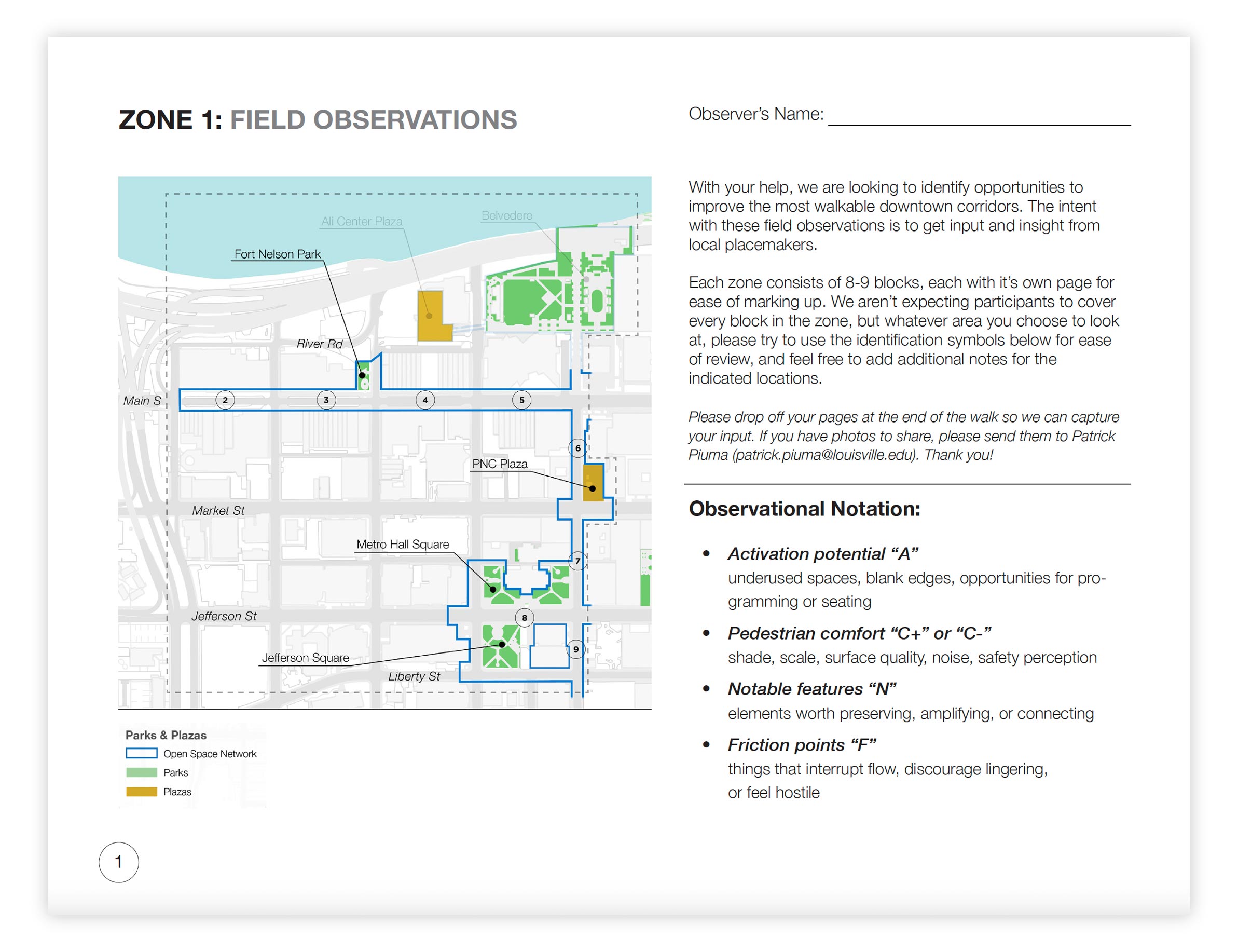 If you know of tools, platforms, or approaches that could help us collect place-based observations in downtown Louisville, or if you'd like to participate in a future field observation session, reach out to the Urban Design Studio.