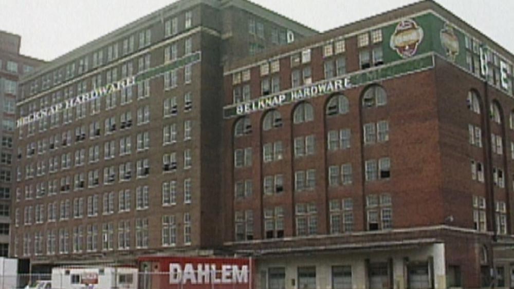 There is not much recorded history about the building itself, as it was mostly used for storage seemingly. The building’s significance in many minds came from how it was demolished. Belknap Hardware and Manufacturing was defunct by 1985, and much of their former complex north of Main was sold to Humana. Humana sought a green connection to the waterfront via a new park, so planned to implode the building north of the Waterside Building. MTV caught wind of this, and created a TV event around imploding the building. Celebrities such as Sandra Bullock and Sylvester Stallone joined the program to help promote the upcoming movie “Demolition Man”. The structure’s demolition was broadcast live on MTV on October 3, 1993.
