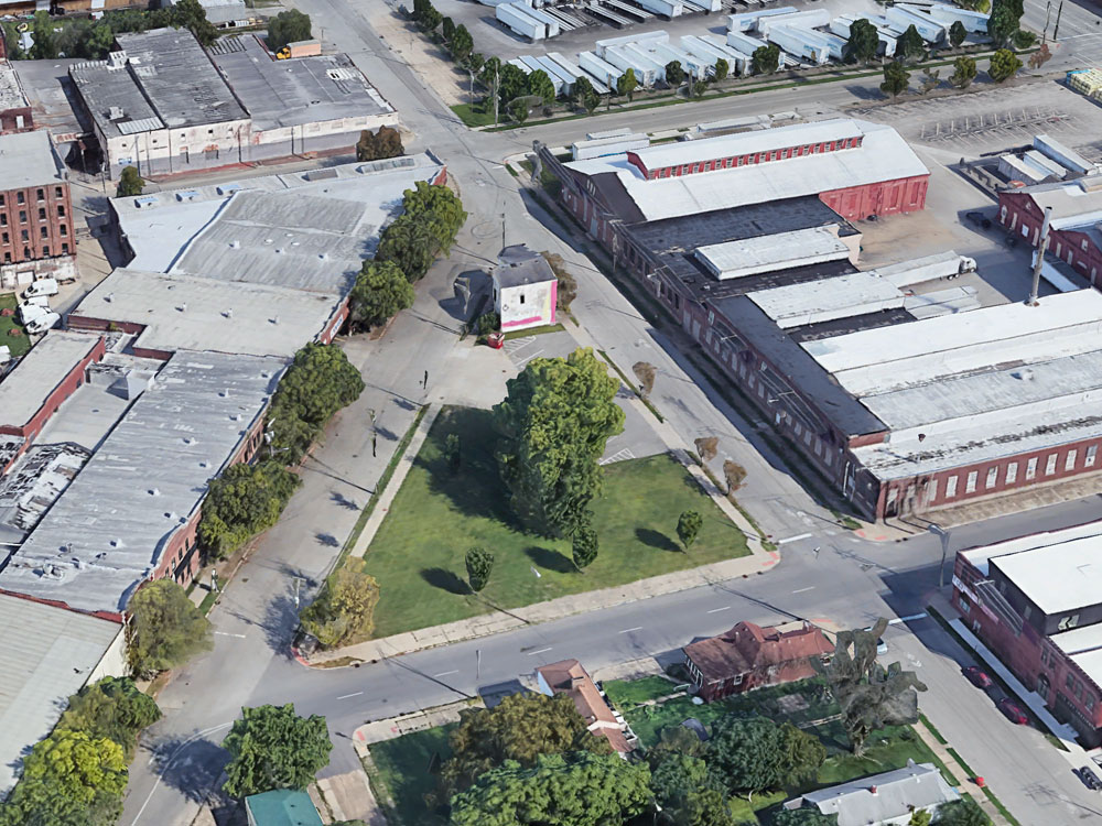 The buildings to the north were once a clothing manufacturer and then a Coca Cola bottling company and now home to KFI Studios a furniture manufacturer. The buildings along the south were part of a sprawling Avery & Son’s Plow Manufacturing complex back in the early 1900s.
