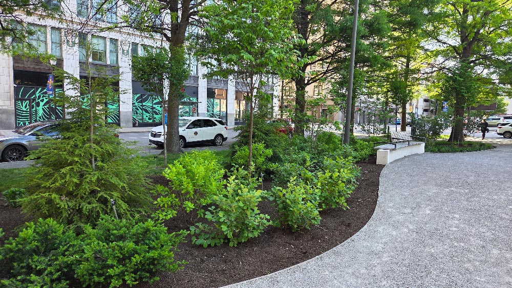 The biggest change to the site, though, has been the planting of 15 trees to replace ones that have died since the initial planting. This gives us about a 12% mortality rate during the first year, which is about what was expected. Some trees simply did not survive the transplant shock or struggled in the relatively unique urban environment. The trees will be replaced as long as they are under warranty, but after the first few years, we will likely stop replacing trees as we allow natural selection to decide which ones survive and thrive. Some new shrubs were also planted around the site, but their mortality rate was significantly lower than that of the trees.