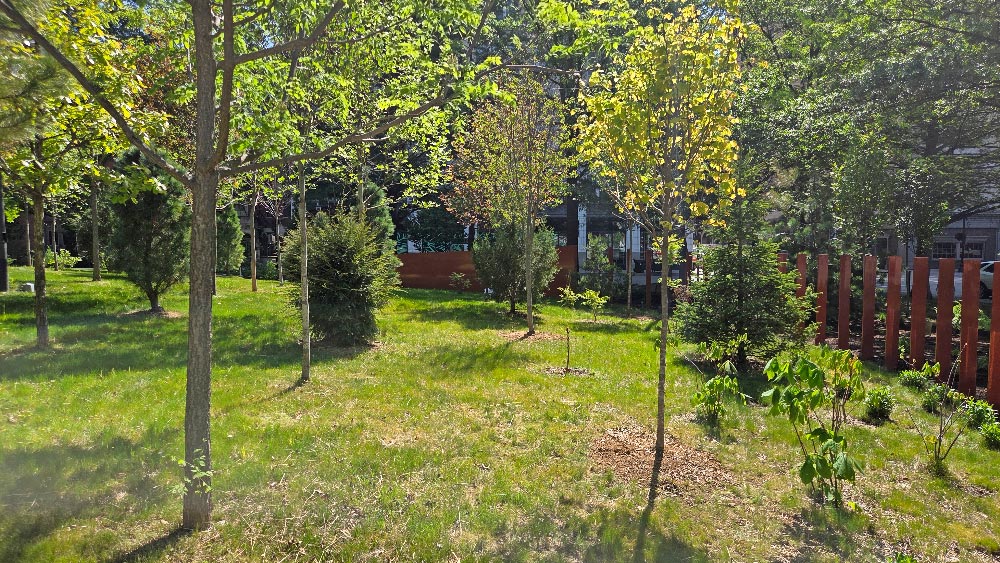 As the anniversary arrives and the planting season closes, we want to ensure the park is in peak condition. Over the past week, teams from Full Care have been working on the microforest in a variety of ways such as pulling weeds, mulching the areas around shrubbery, applying treatments to some of the mature trees, and increasing the daily watering for the summer.
